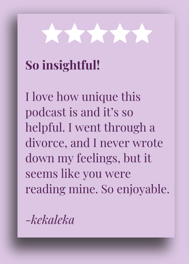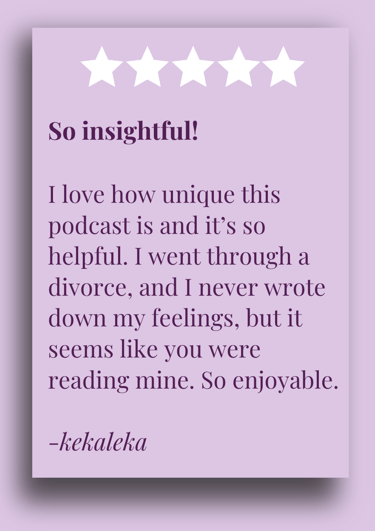 I will continue to add episodes loaded with value, so that it becomes one of the "go to" resource for women navigating their unwanted separation. If you have not had a chance to subscribe and listen yet, don't worry, you can find it right here on my website. All you have to do is scroll down. But if you are already an avid podcast listener, you can search and find it where ever you like to stream from.